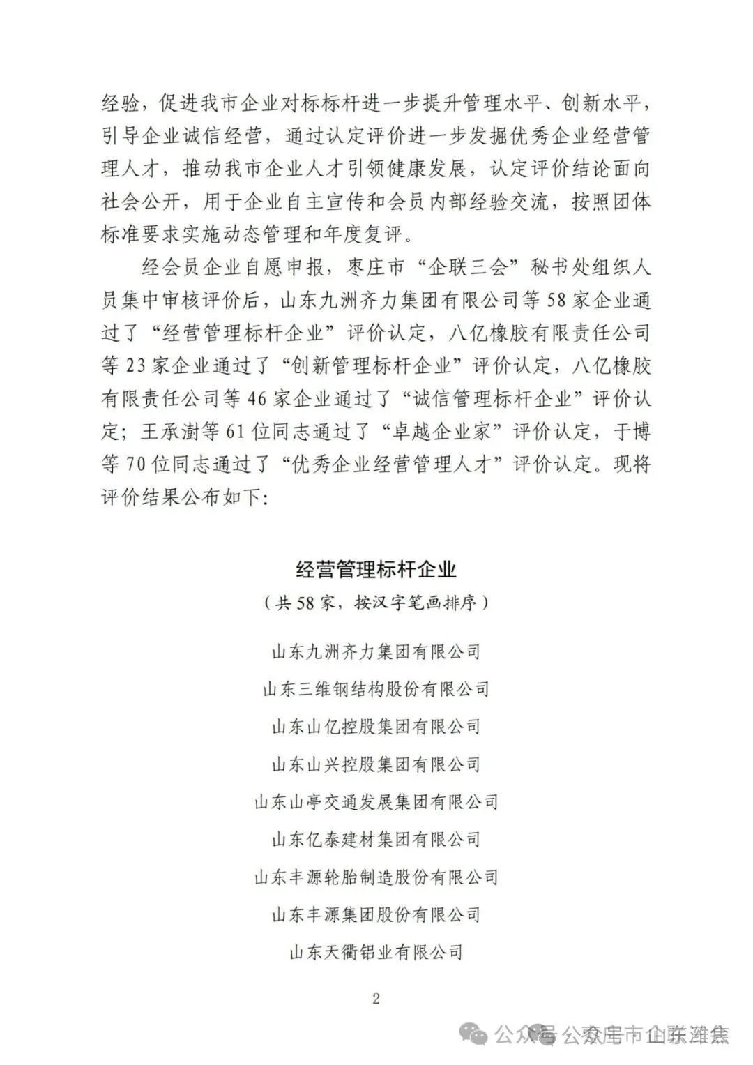 近日,棗莊市企業聯合會、棗莊市企業家協會、棗莊市工業聯合會發布《關于2024年管理標桿企業及其優 秀管理者認定評價結果的通知》,山東濰焦集團薛城能源有限公司、棗莊杰富意振興化工有限公司榮獲2024年度“經營管理標桿企業”稱號。這是對兩公司經營管理水平、管理創新能力等方面的充分肯定和認可。